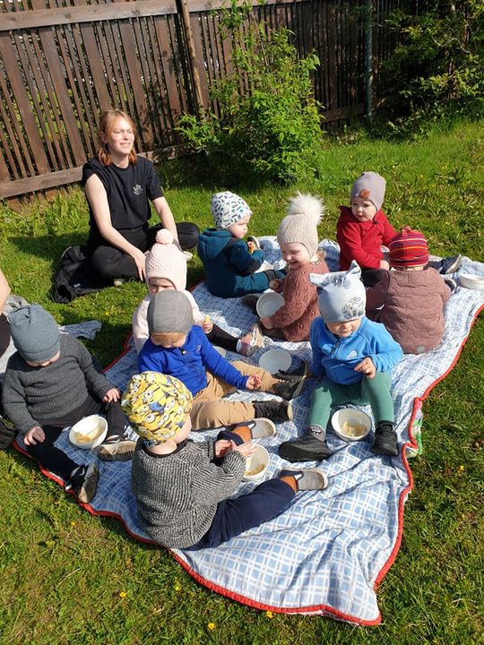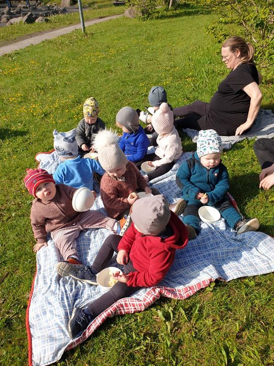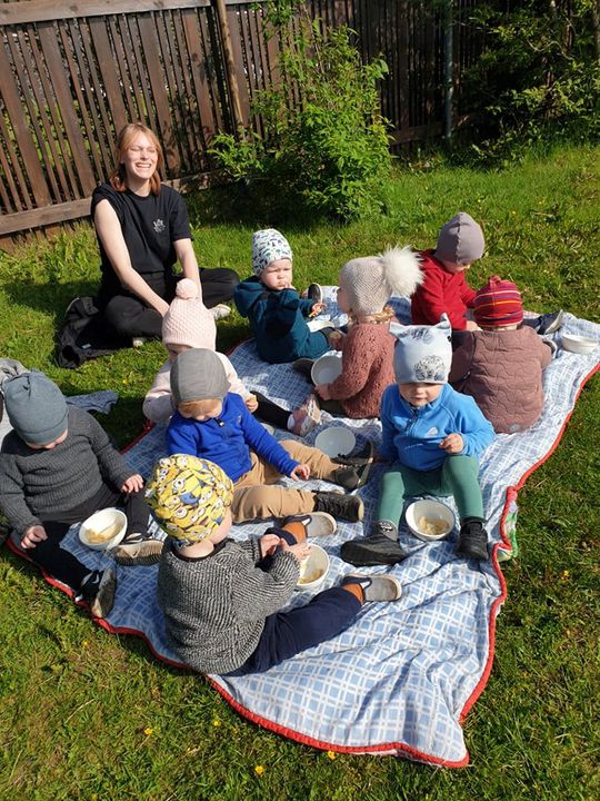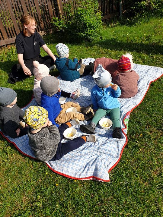 Það er svo mikil blíða í dag að Þrastarhreiður færði samverustundina og ávextastundina út í sólina <3 Krökkunum fannst það sko ekki leiðinlegt ;)