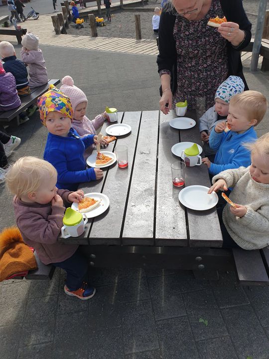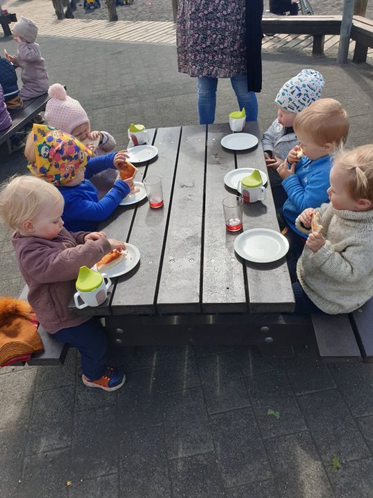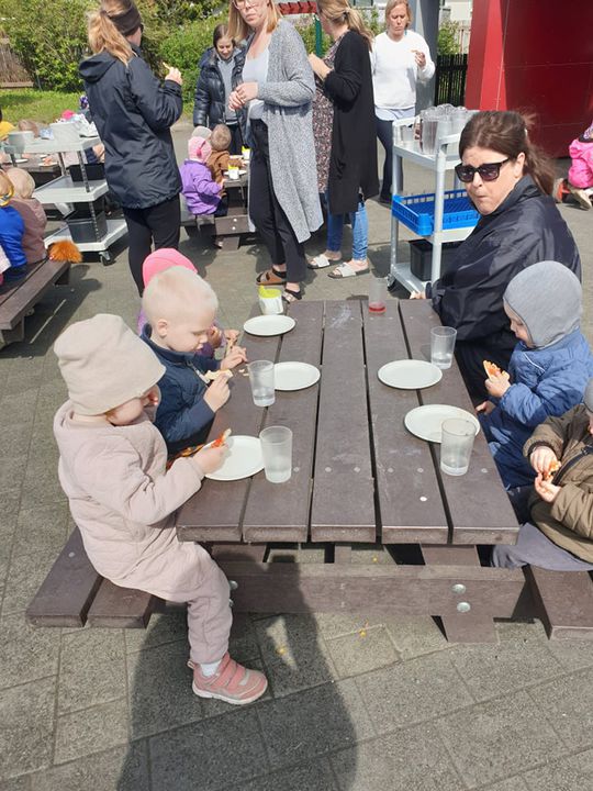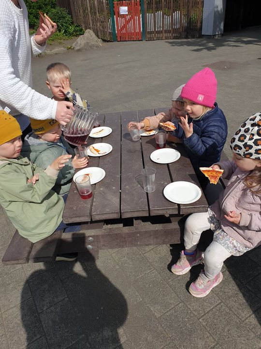 Í dag lokar leikskólinn klukkan 13:00, við ákváðum að borða úti í blíðunni í tilefni dagsins.