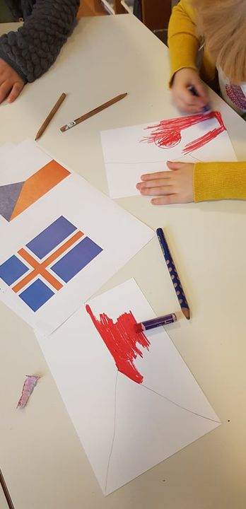 Allir eru nú á fullu að undirbúa komu Tékkana, börnin á Krummahreiðri eru til dæmis að búa til íslenska og tékkneska fána, ótrúlega flott hjá þeim.