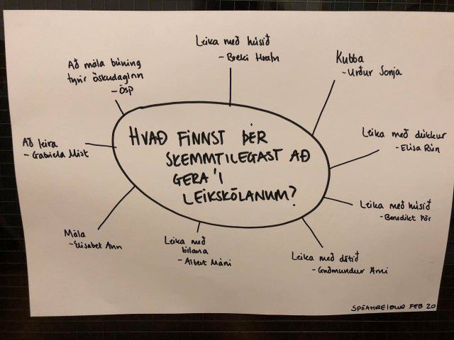 Inni á deildum voru börnin búin að ræða hvað þeim þætti skemmtilegt í leikskólanum. Yndislegur dagur í Rjúpnahæð :)