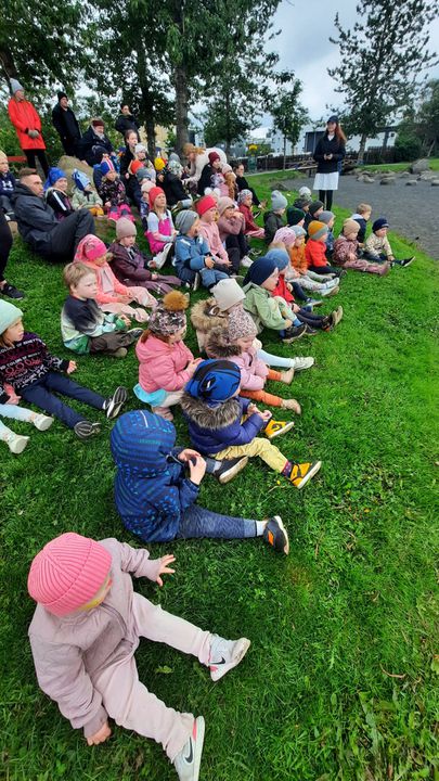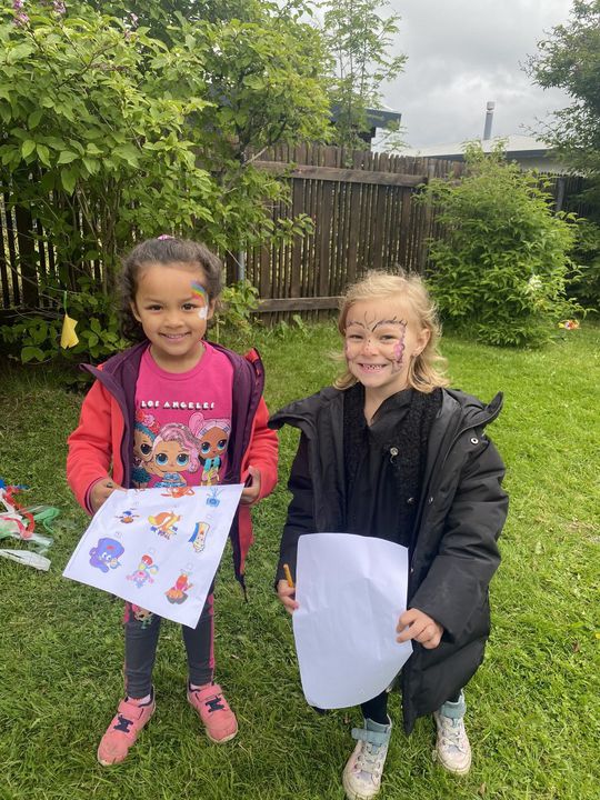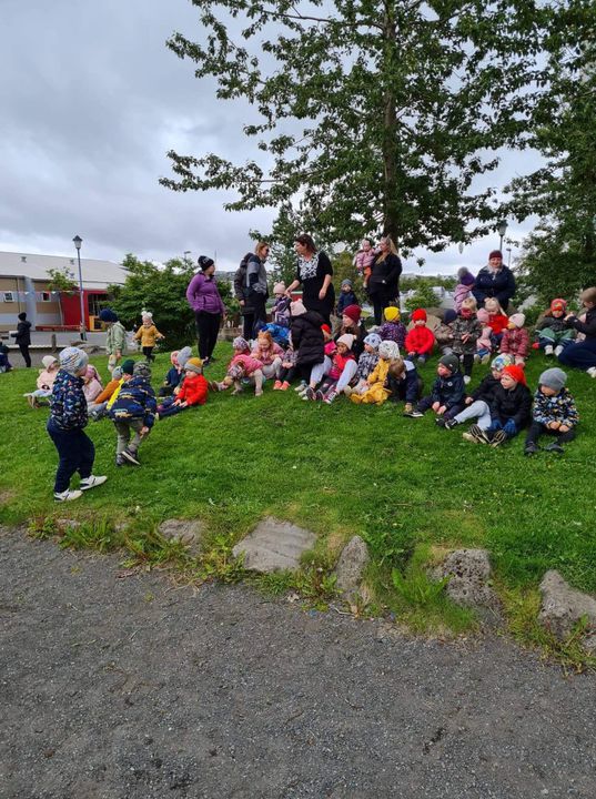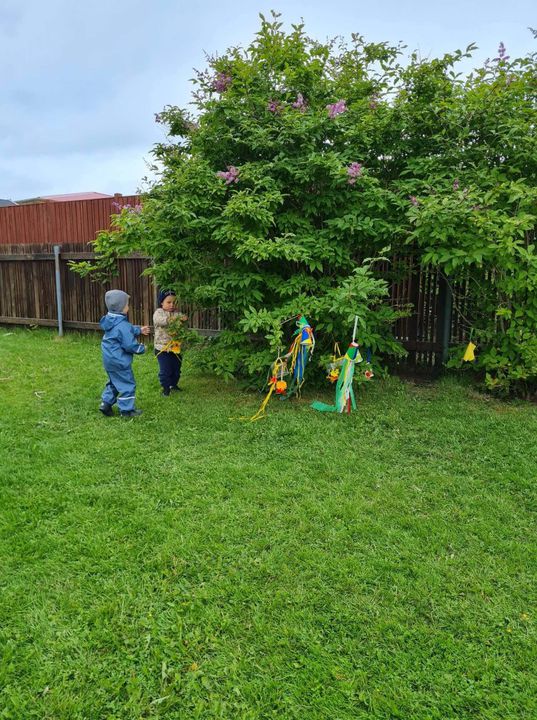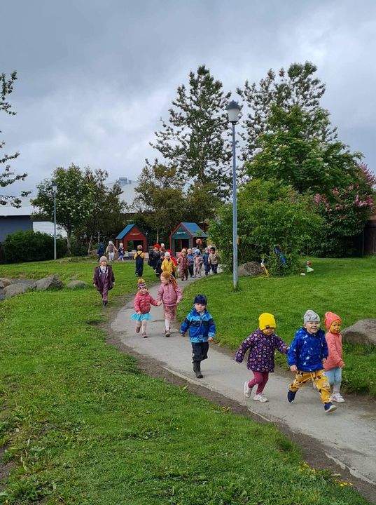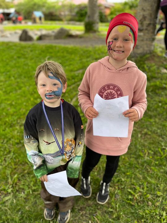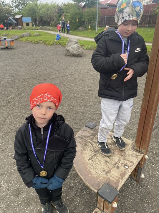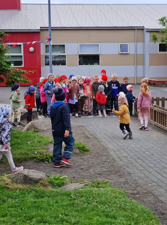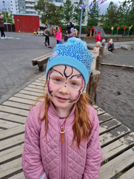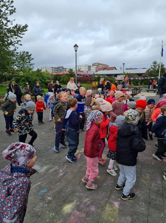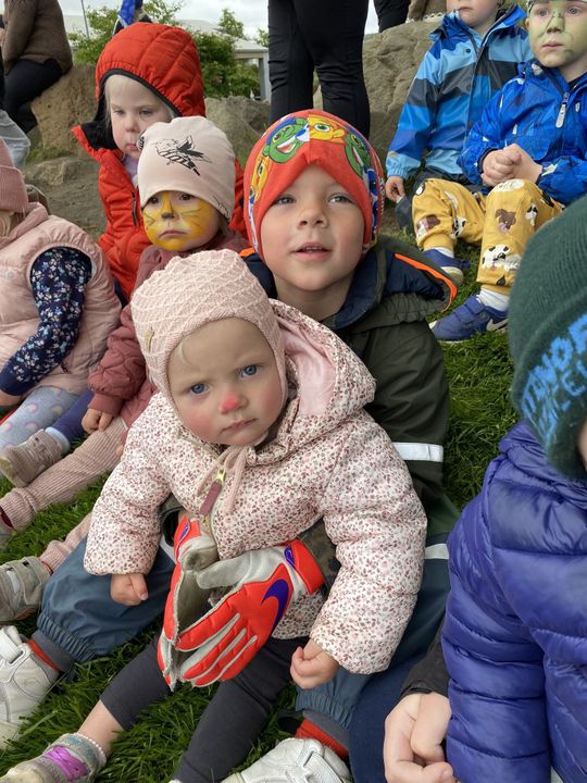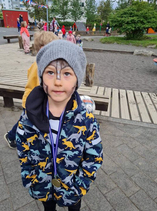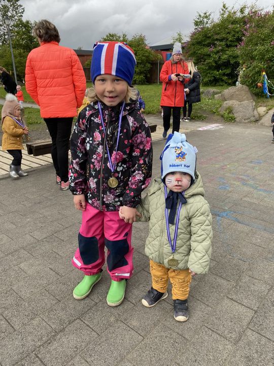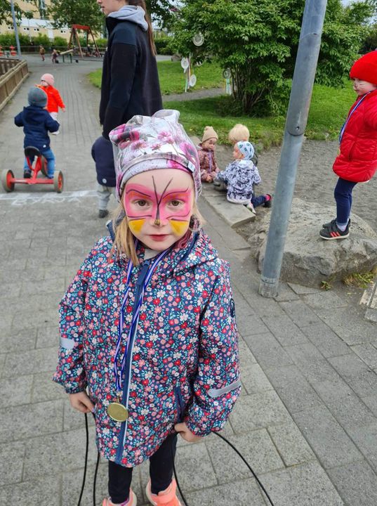 Á fimmtudaginn í síðustu viku vorum við með sumarhátíð í leikskólanum, í ár höfðum við hana með breyttu og ákveðið var að bjóða ekki foreldrum þar sem afmælishátíðin okkar er nýafstaðin. Við byrjuðum á því að skreyta garðinn okkar og flögguðum íslenska fánanum, settumst svo í brekkuna þar sem sumarhátíðin var sett og við sungum nokkur lög saman. Hið árlega Rjúpnahæðahlaup var haldið þar sem Sigga Lilja sá um upphitun og peppa krakkana sem hlupu síðan í gegnum allan garðinn, allir fengu medalíu að hlaupi loknu. Boðið var upp á andlitsmálingu og voru stöðvar sumarskólans með eitthvað skemmtilegt á hverjum stað. Í hádeginu grilluðum við síðan pylsur sem flestir borðuðu saman úti og fengu svala með :)