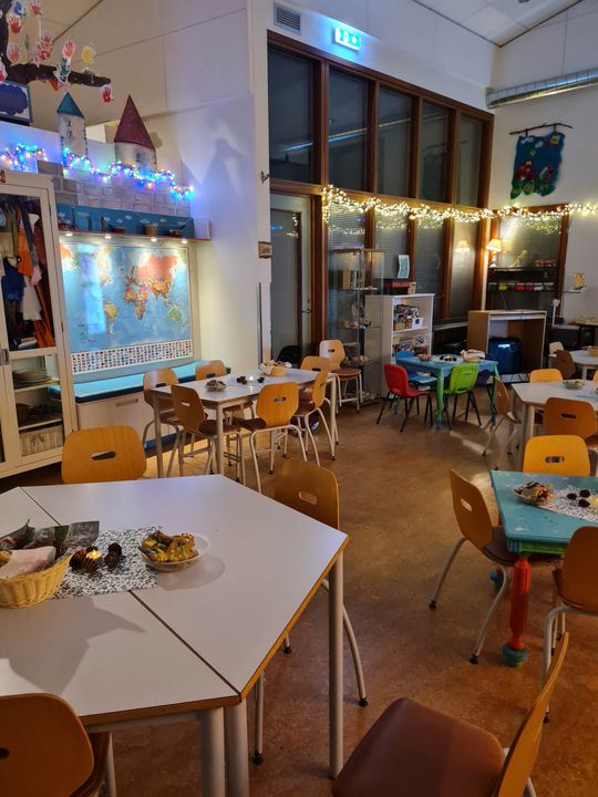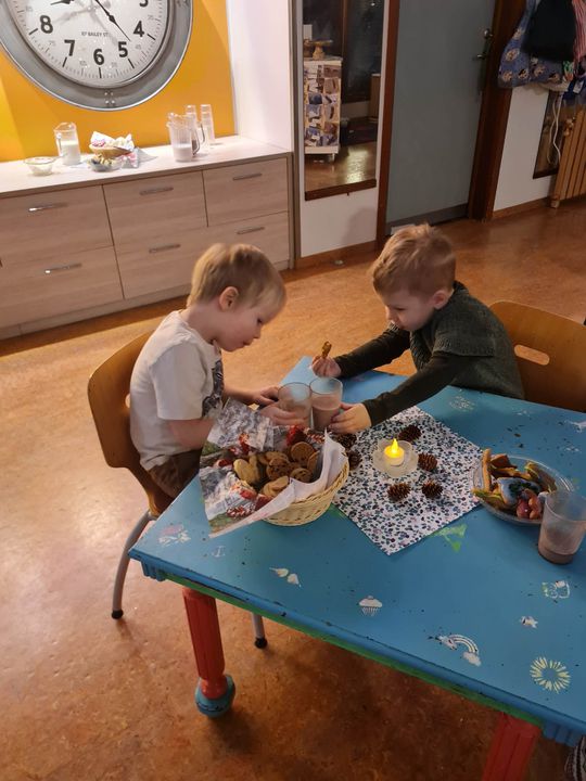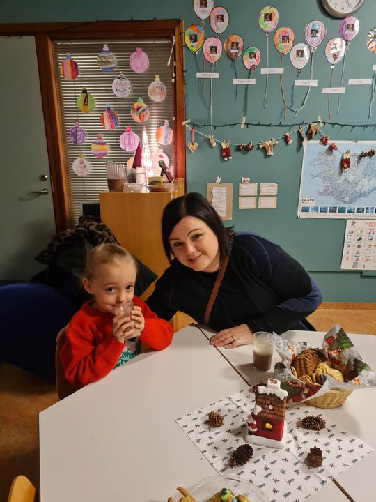 Í gær vorum við með jólakaffi í leikskólanum þar sem boðið var upp á smákökur og heitt súkkulaði. Í ár var foreldrum loksins boðið í kaffi og smákökur eftir tveggja ára fjarveru.