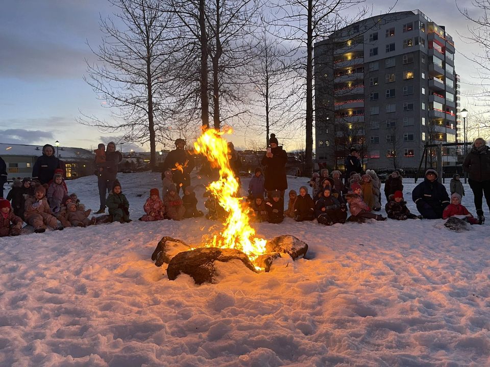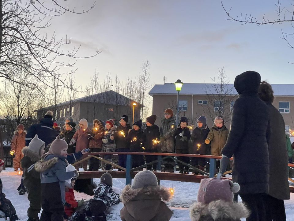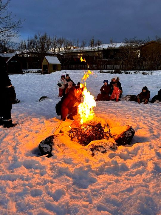 Við héldum upp á þrettándann síðastliðinn föstudag 5. janúar og kvöddum við jólin við hátíðlega athöfn við varðeld. Í vikunni hefur fræðsla og umræða um þennan dag átt sér stað og af hverju við höldum upp á hann. Gerð voru hugarkort inni á deildum í þeim tilgangi að fá fram sýn barnanna. Þau voru með það á hreinu að þrettándinn táknar að jólin séu búin, að þá séu jólasveinarnir farnir aftur heim til sín og á eldri deildunum fræddust þau um gamla íslenska þjóðtrú um talandi kýr, álfa sem flytjast búferlum og ýmislegt fleira.