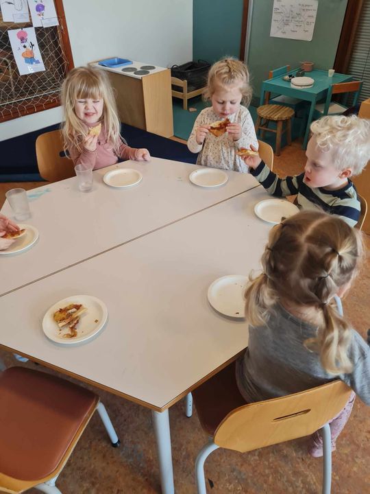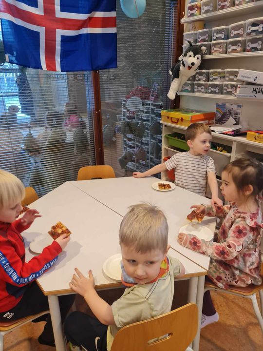 Allir voðalega ánægður að fá pizzu með skinku, hakki, pepparoni eða osti. Kakan slær svo alltaf í gegn hjá flestum börnunum.