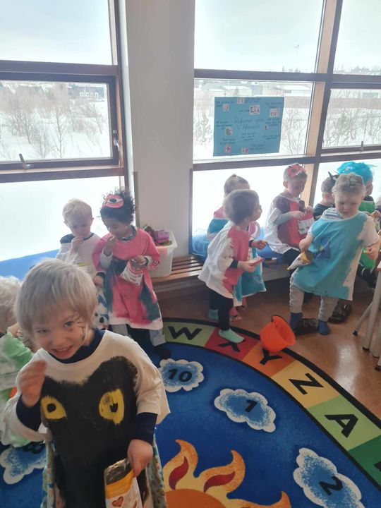 Öskudagurinn er einn stærsti dagurinn í Rjúpnahæð ár hvert, þá rennur loksins sú stund upp að börnin fá að klæðast búningunum sem þau hafa hannað og búið til undanfarnar vikur. Það var mikill undirbúningur þetta árið og höfðu börnin mjög mikill áhrif hvernig leikskólinn var skreyttur í ár. Það sáust allskonar fígúrur, ofurhetjur, prinsessur og dýr á deildum og göngum leikskólans í dag.