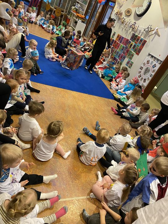 Það var slegið köttinn úr tunnunni og úr tunnunni komu fullt af snakkpokum. Eftir snakkátið var svo dansað þar sem Hlynur kennari á Krummahreiðri var í fremstu röð að sem DJ. Svo eftir dansinn var slegið í pylsupartý þar sem börnin borðuðu sína pylsu þar sem þau vildi.