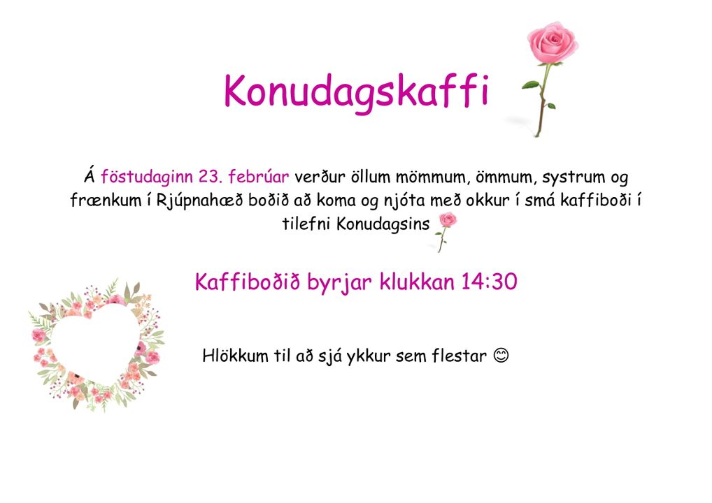 föstudaginn 23. febrúar verður öllum mömmum, ömmum, systrum og frænkum í Rjúpnahæð boðið að koma og njóta með okkur í smá kaffiboði í tilefni Konudagsins