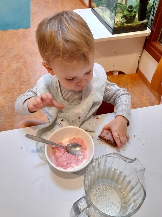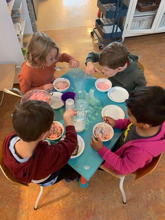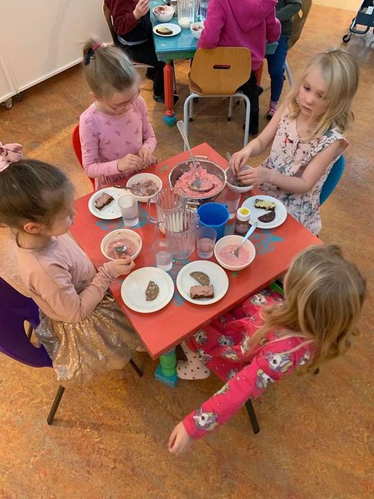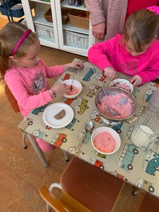 Í dag vorum við með bleikan dag í leikskólanum sem var voða skemmtilegur, það var svo gaman að sjá hvað margir tóku þátt og fóru flestir starfsmennirnir líka alla leið. Í hádeginu fengum við svo bleikan grjónagraut að borða sem krökkunum fannst ótrúlega skemmtilegt.